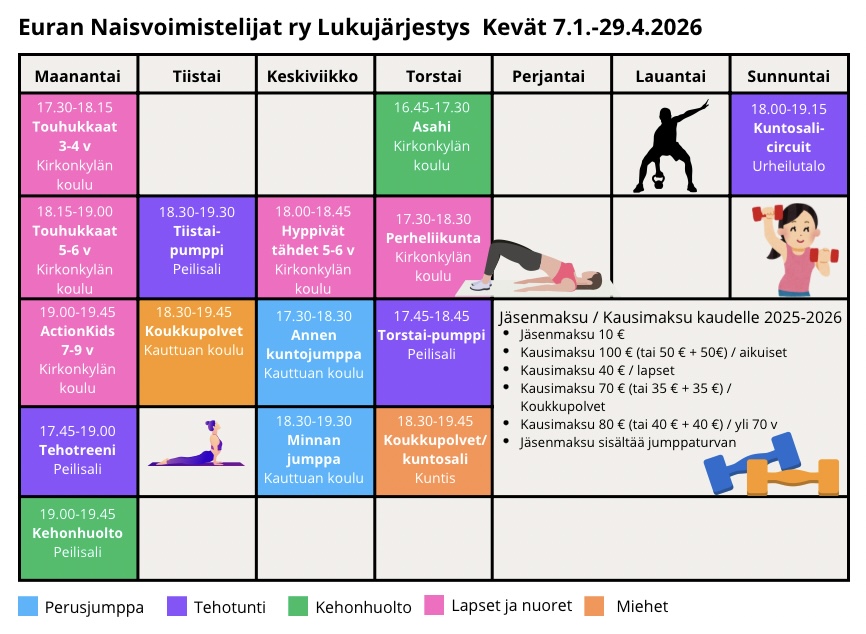 Lukujärjestys kevätkaudelle 2026 on nyt julkaistu ja ilmoittautumiset ovat auki Hoikassa. Nähdään tunneille!