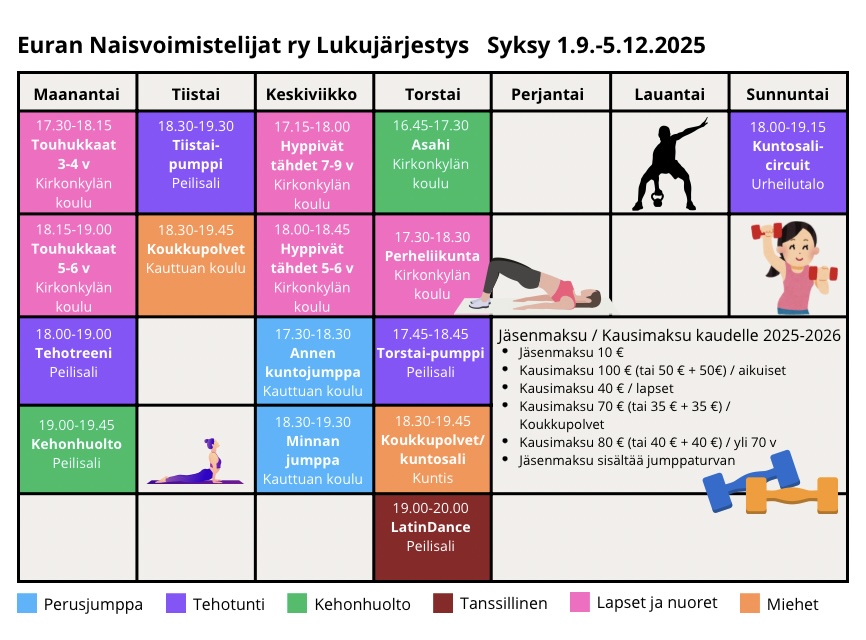 Jäsenmaksu sisältää jumppaturvavakuutuksen.