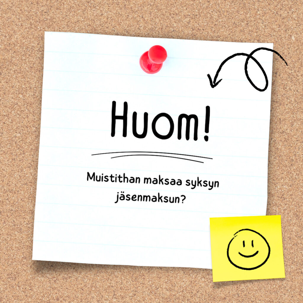 18.9.202518.9.2025 Nenna-Emilia LainioSyksyn jäsenmaksutSyksyn jumpat ovat pyörähtäneet käynyiin ja muistuttelemmekin syksyn jäsenmaksun maksamisesta. Mikäli sen tai ilmoittautumisen kanssa on ongelmia, kysy meiltä apua! Nähdään jumpissa🤩